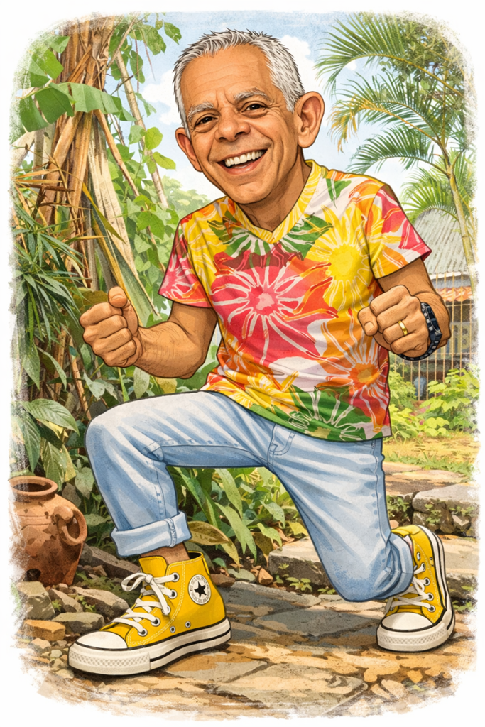 El paso por Burger King ocurrió porque mi mamá, que no fue con nosotros, me había pedido Nuggets, así que ahí fuimos a dar. Y esa historia terminó siendo más sobresaliente que Bacchus, sobre todo porque yo andaba vestido con pantalón celeste, camisa de flores estampadas de mi marca pintada por mí, suetercito blanco y tenis Converse amarillos de bota. Para Bacchus se valía, parecía diseñador; pero ya en el BK de Pavas probablemente me veía como un bañazo multicolor, aunque la verdad eso importa poco. En Bacchus el paso fue inadvertido; otras veces termino hablando con gente de otras mesas, o me reconocen por Apacigua, por escritor o acuarelista, pero hoy solo fui yo mismo conversando con Luis Fer y los meseros, y la pasamos bien en un lugar hermoso.