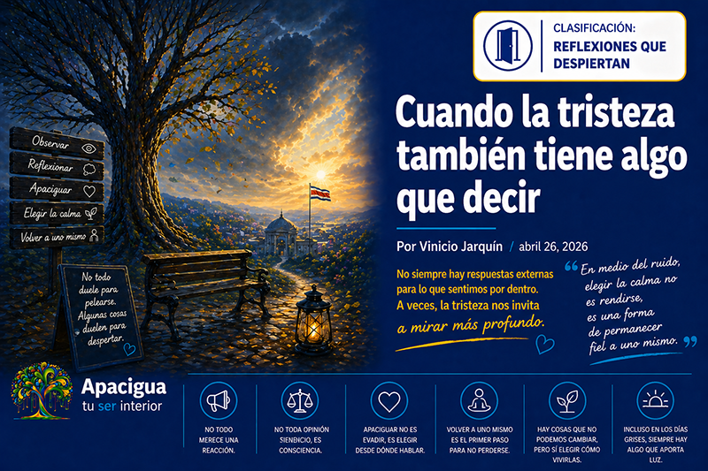Porque hay un punto donde uno deja de discutir hacia afuera y empieza a observar hacia adentro. Y ahí aparece esta tristeza. No como derrota, no como rendición, sino como una forma de procesar lo que se está viendo. Como un espacio donde uno reconoce que no todo se puede cambiar desde la palabra, que no todo se puede convencer, que no todo se puede corregir.