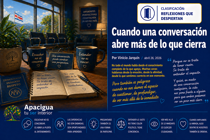 Porque no se trata de tener razón. Se trata de entender el impacto. Y quizá, en medio de una conversación cualquiera, en una sala de espera, la vida nos pone frente a alguien no para convencerlo… sino para que ambos podamos ver un poco más claro.