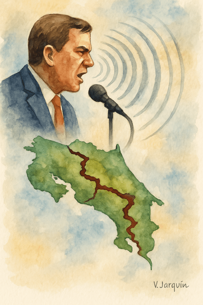 Primero, porque convierte la diferencia en enemistad. Segundo, porque insinúa que hay un grupo de “verdaderos costarricenses” y otro que debería irse. Y tercero, porque normaliza el odio, lo disfraza de patriotismo y lo convierte en consigna electoral.