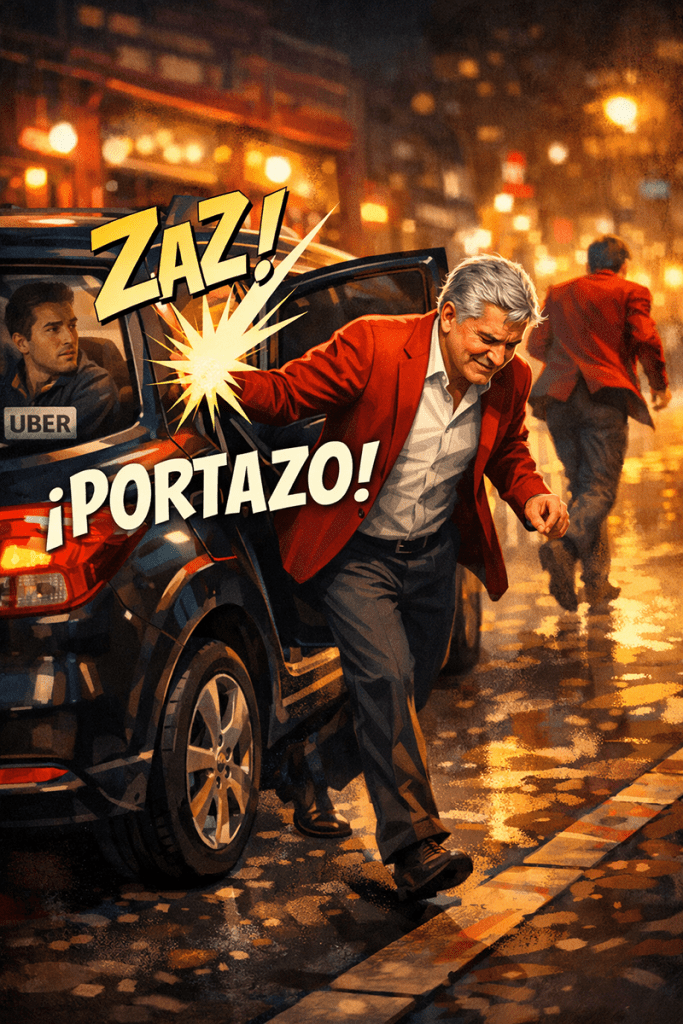La música se queda sonando en la cabeza cuando uno sale. El cuerpo todavía va un poquito adelantado a la realidad. Todo bien. Todo en orden. Se abre la puerta del carro, uno se sube con esa coordinación ligeramente optimista que dan los tragos, y en ese mismo segundo ocurre el evento que nadie vio venir: la otra puerta.